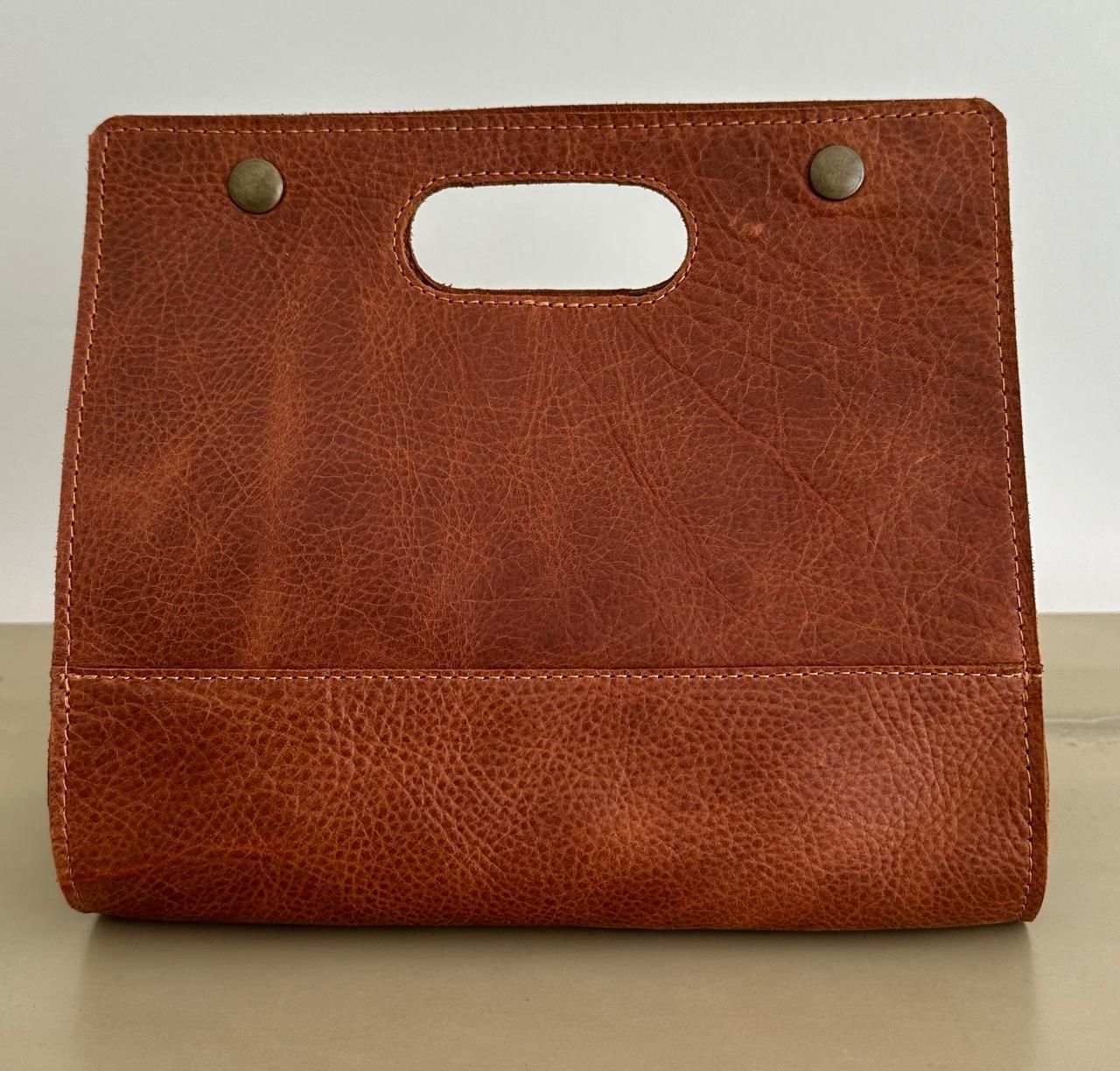 Cartera de cuero graneado forrada con dos compartimentos. En su interior posee un bolsillo con cierre y tira para colgar tus llaves. Correa regulable y desmontable.